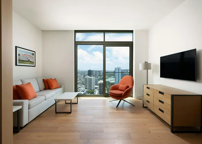 Located 6 minutes' walk from Don Quijote Store, Renaissance Honolulu Hotel & Spa includes 2 outdoor swimming pools and a sun terrace. Guests can enjoy a poolside bar along with a steam room, a Jacuzzi, and locker rooms, a short way from the North Shore.